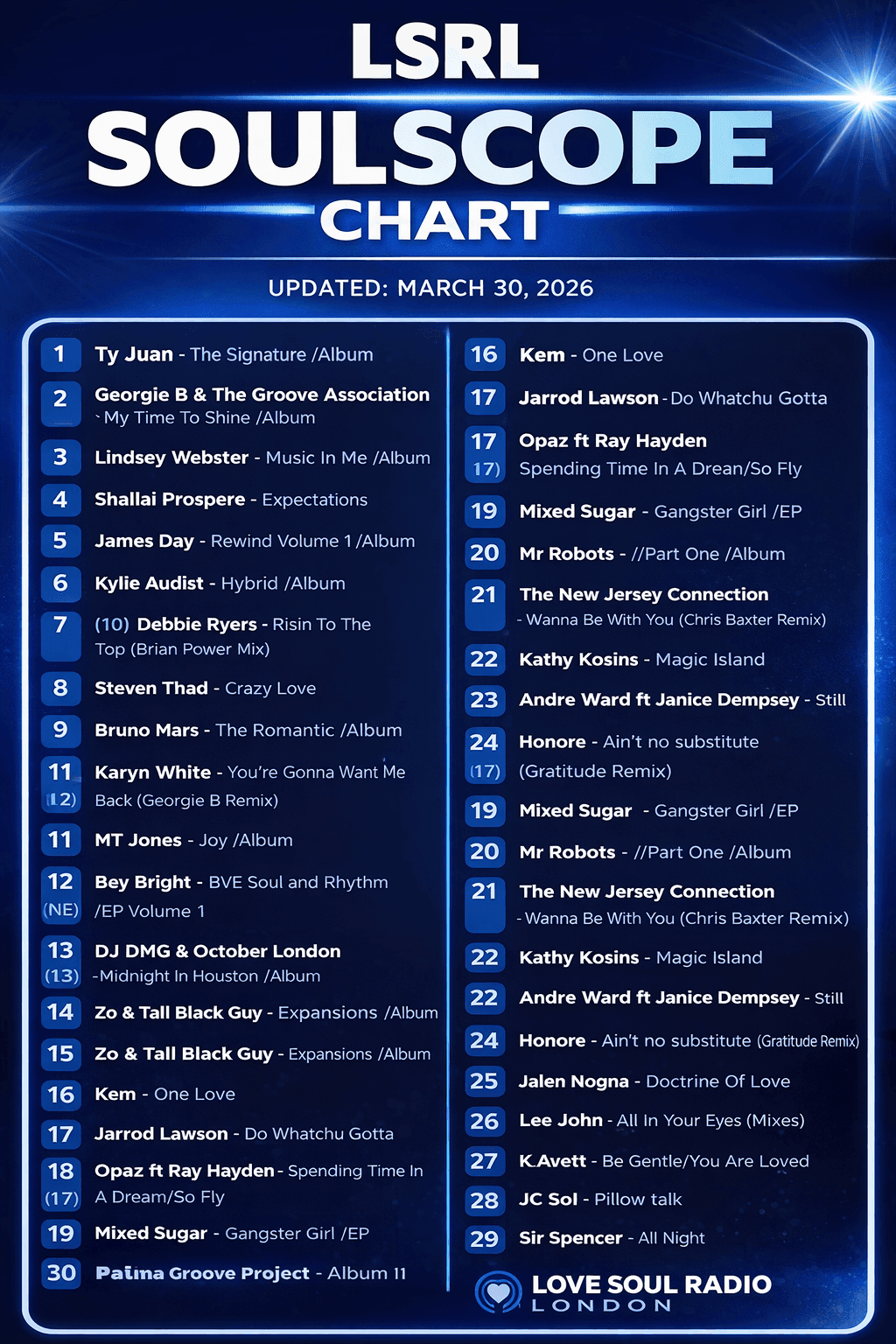 UK soul music charts top 30 updated weekly