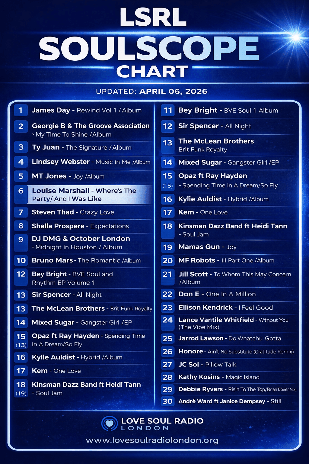 UK soul music charts top 30 updated weekly